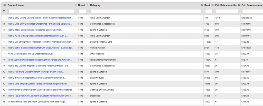 They are quite diverse in their product offering and are in a lot of different categories. Be sure to play around in the ASINspector features to source similar items, get keyword data and ideas, as well as find other similar products that may spark more products ideas to research.