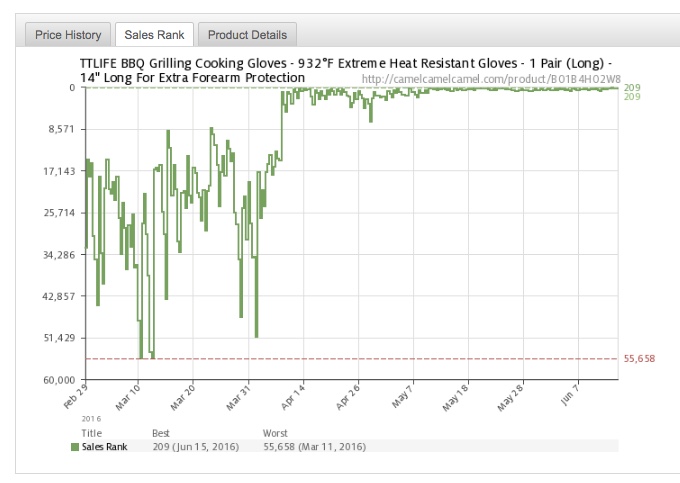 Well, just that fact that these are BBQ Gloves is a pretty good indication that the sales are probably seasonal, but using the Google Trends feature in ASINspector can tell us for sure:
