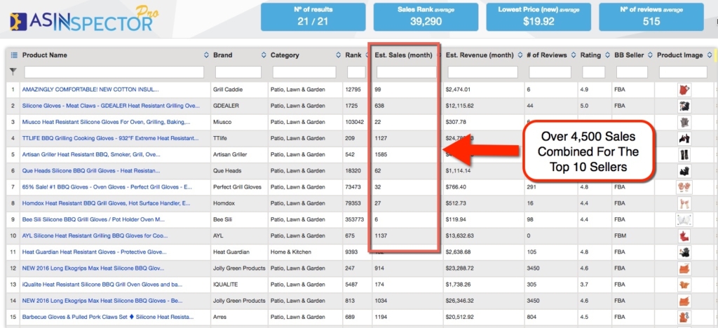 We’re really only interested in the first 10 results that come back so we can analyze their numbers and see how many sales they are estimated to be selling.
