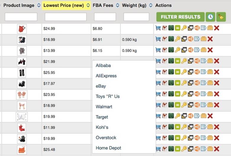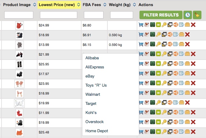 All you have to do to source some of these items quickly is to click the Shopping Cart Icon in ASINspector and select the site you want to search for product sources.